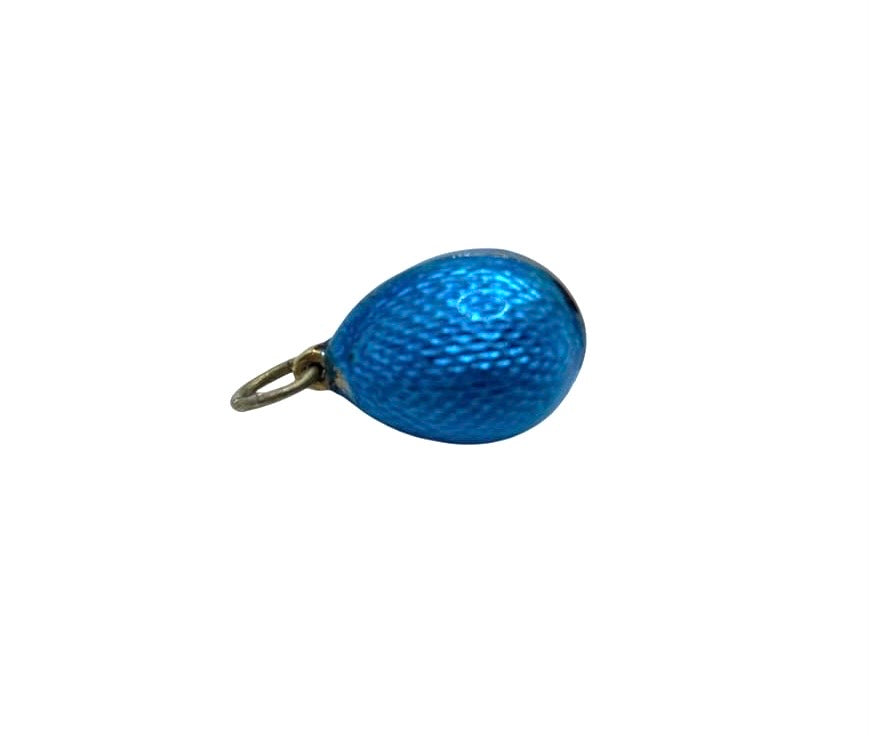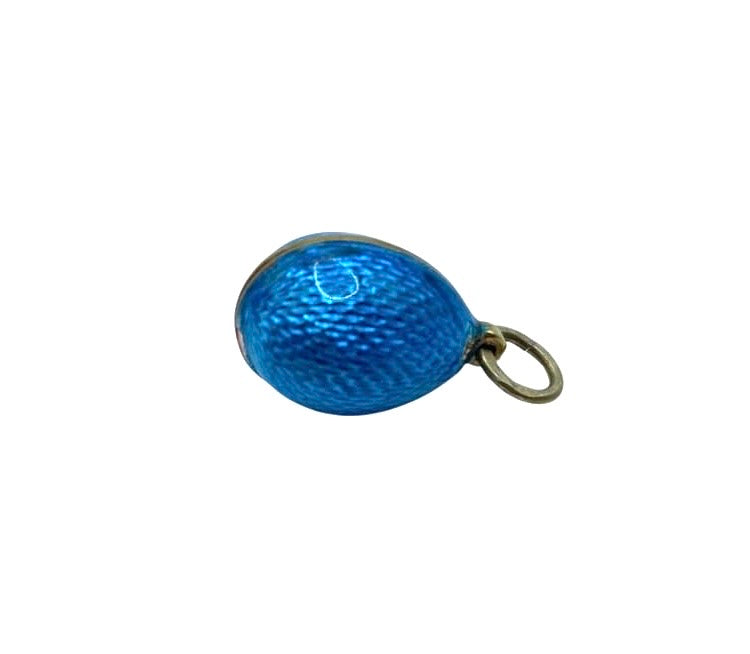 Antique Sterling silver, Russian Imperial Guilloche Blue Enamel Egg Pendant by Fabergé master Anders Johan Nevalainen.