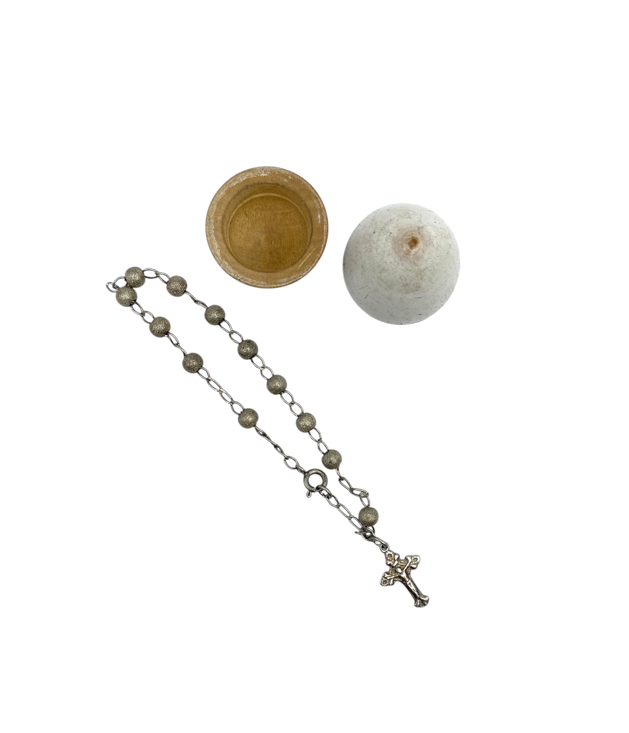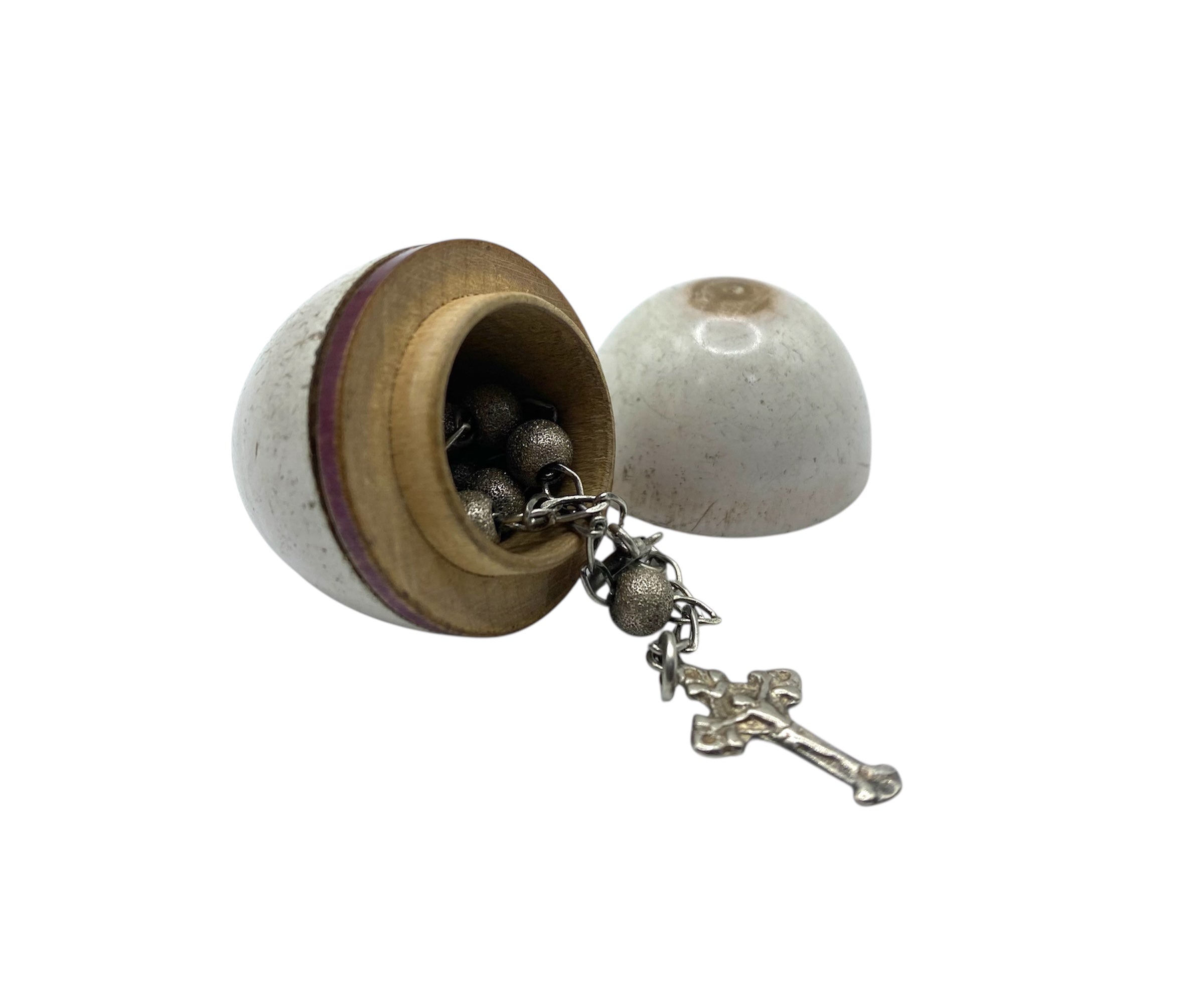 Beautiful Antique miniature silver Rosary In a wooden Egg