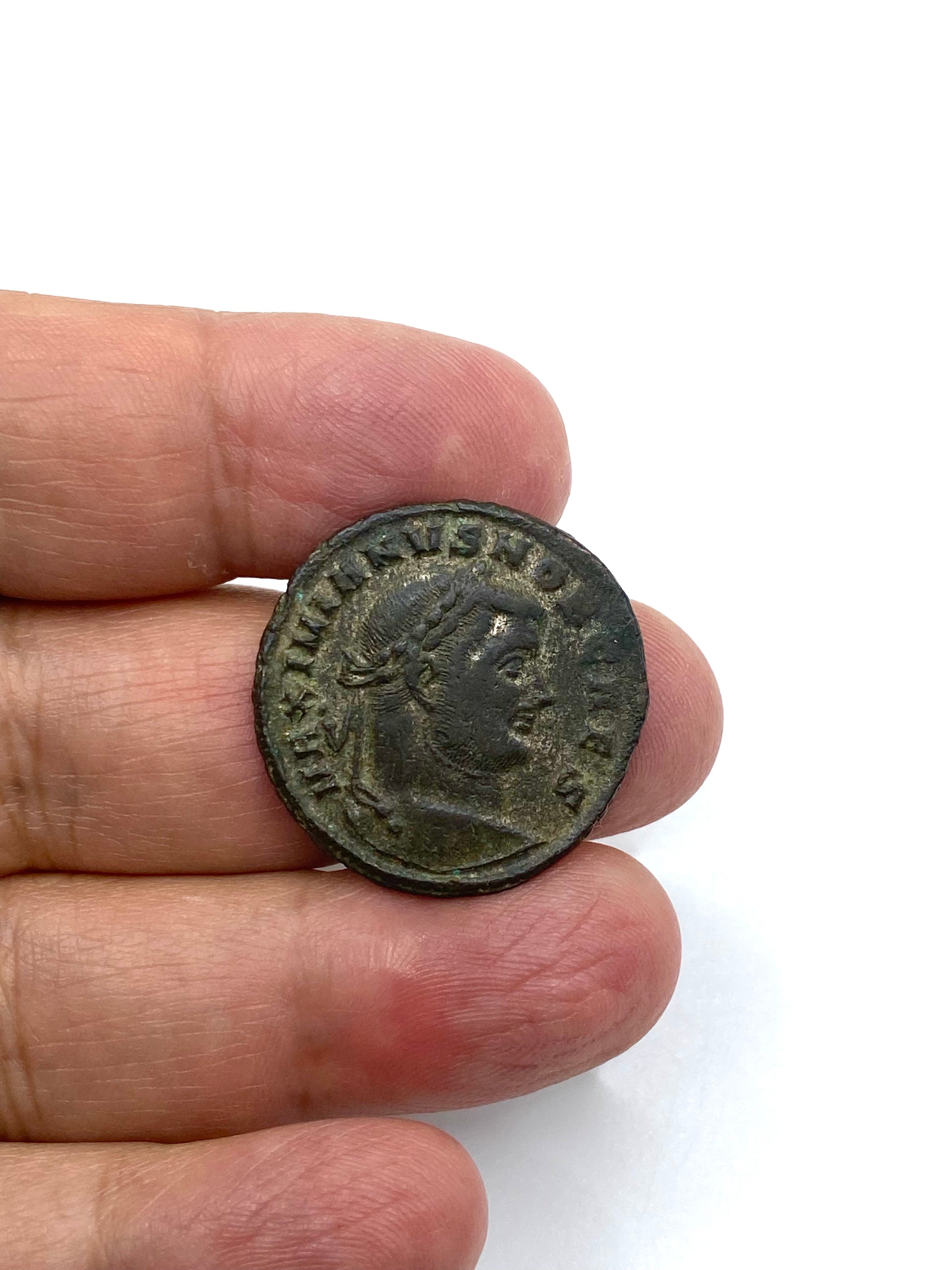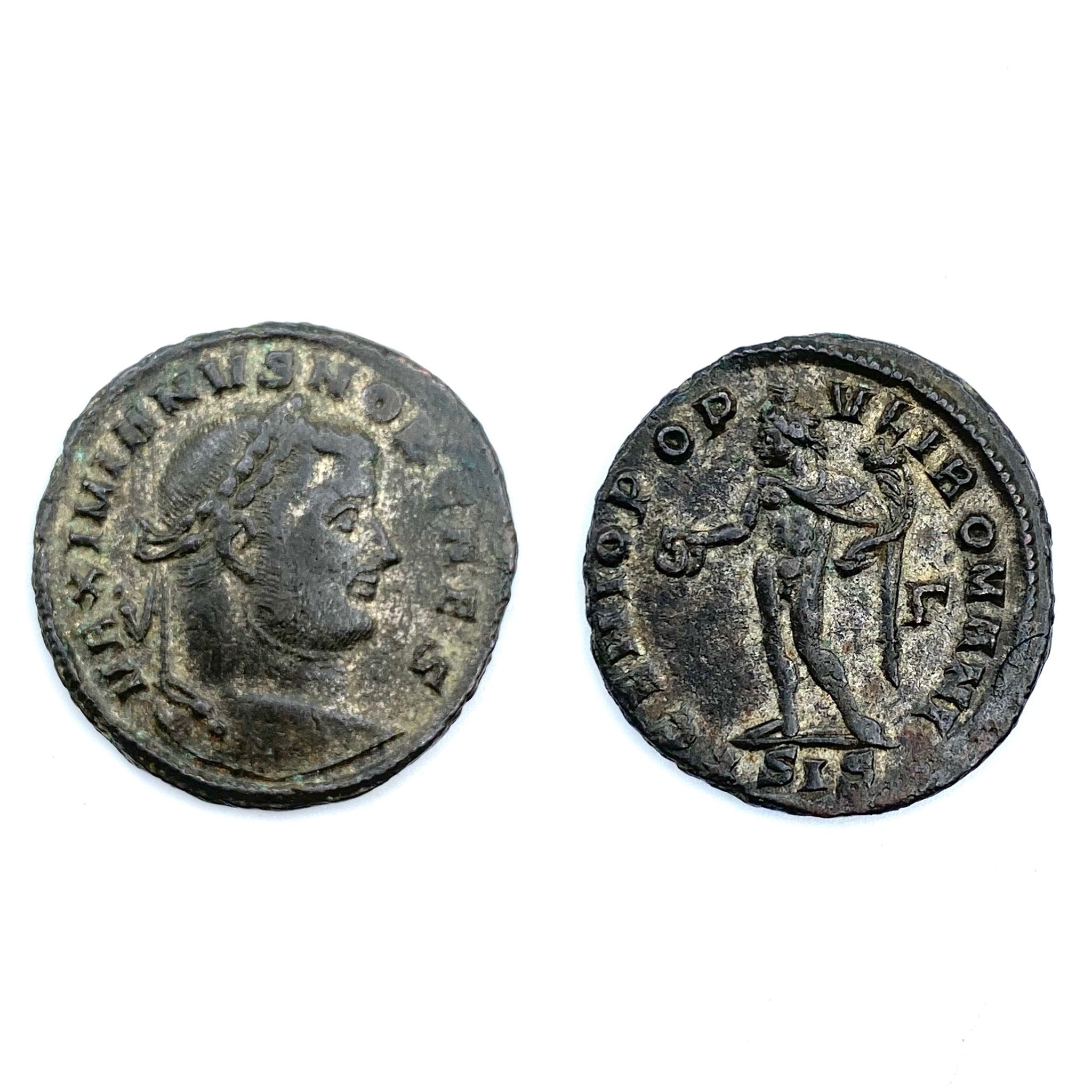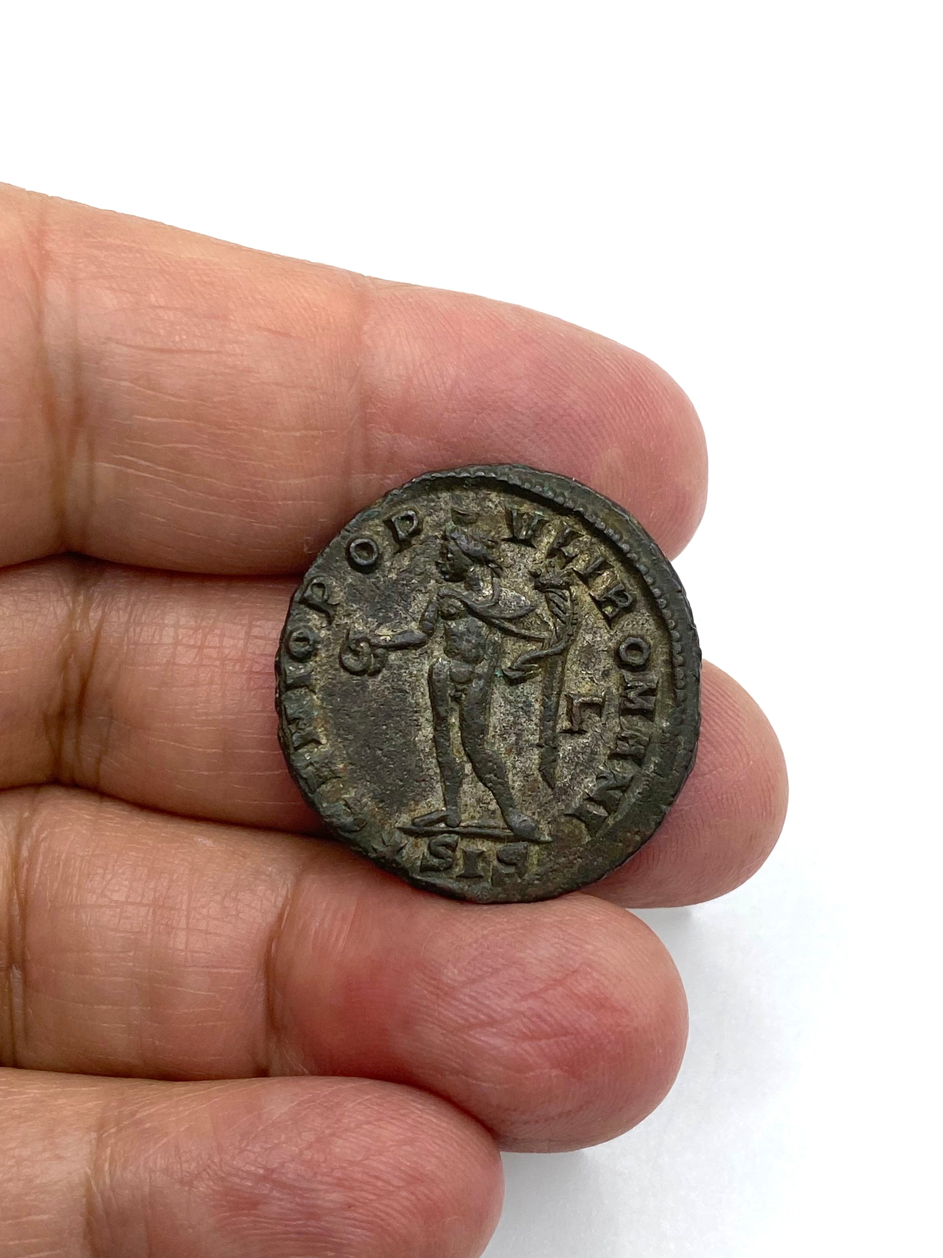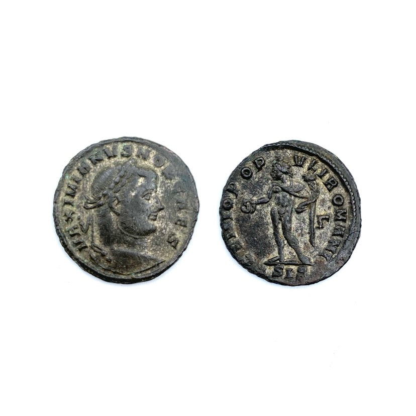 Galerius, 305-311. Follis (Bronze, 24 mm, 8.38 g, 6 h), Alexandria, late 308-310. IMP C GAL VAL MAXIMIANVS P F AVG Laureate head of Galerius to right. Rev. GENIO IMP-ERATORIS / B / K - P // ALE Genius, nude but for chlamys over his left shoulder, standing front, head to left, holding patera in his right hand and cornucopiae in his left. RIC 107a.