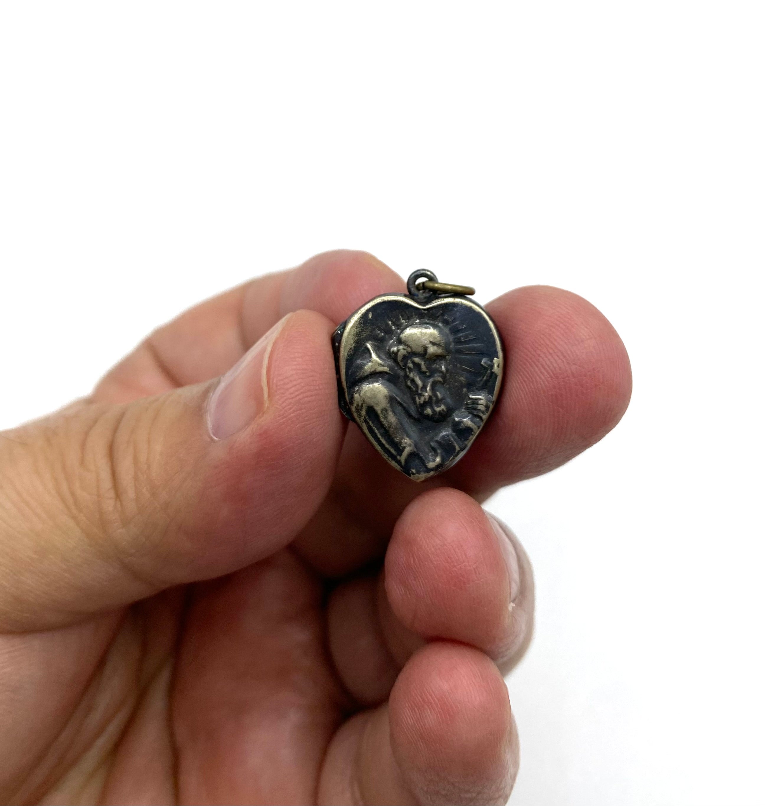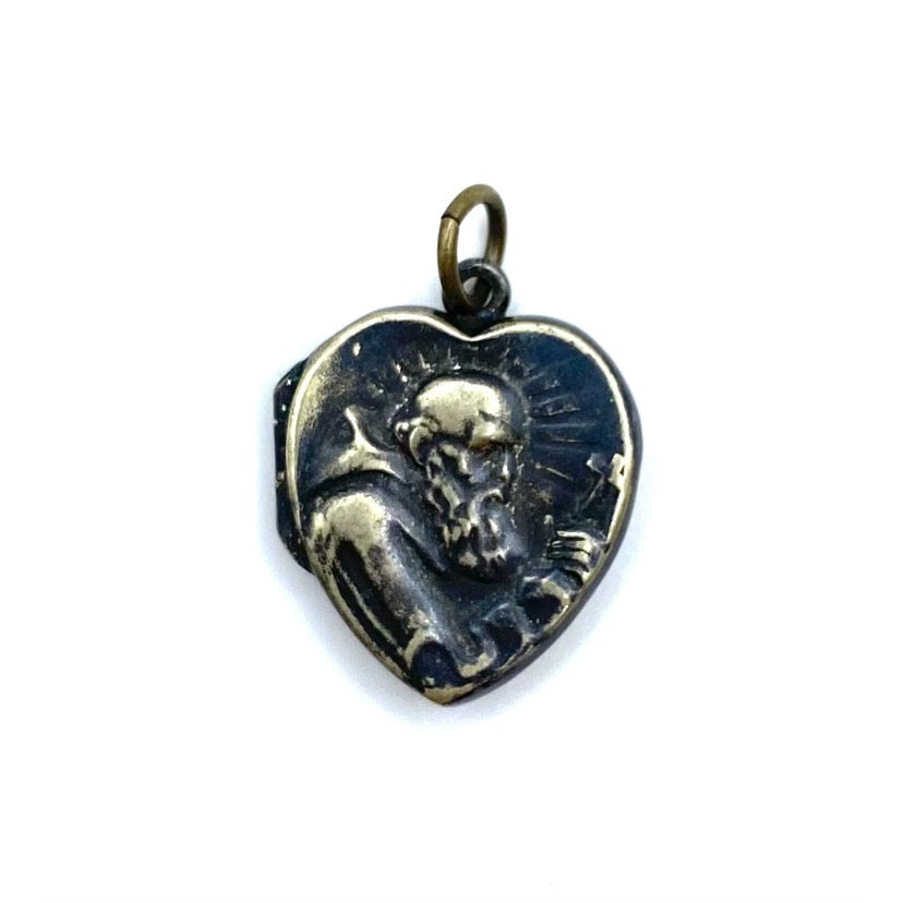 Heart medallion with profile portrait of Saint Conrad. Inside relics of St. Therese and St. Conrad.