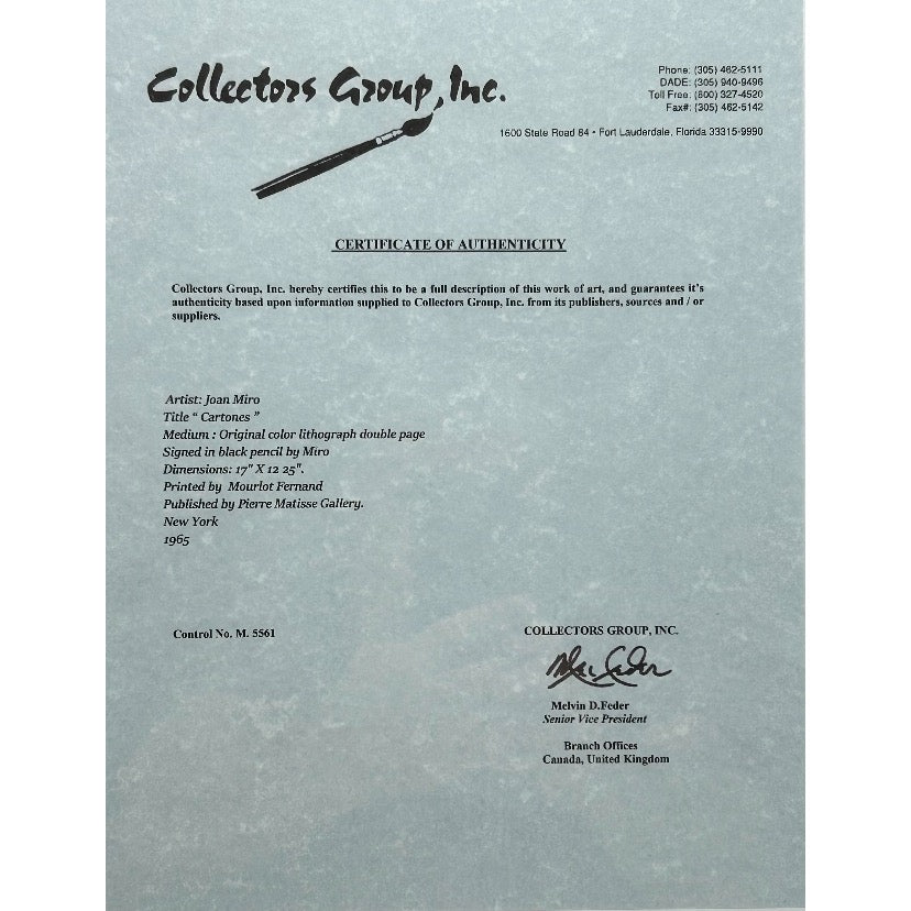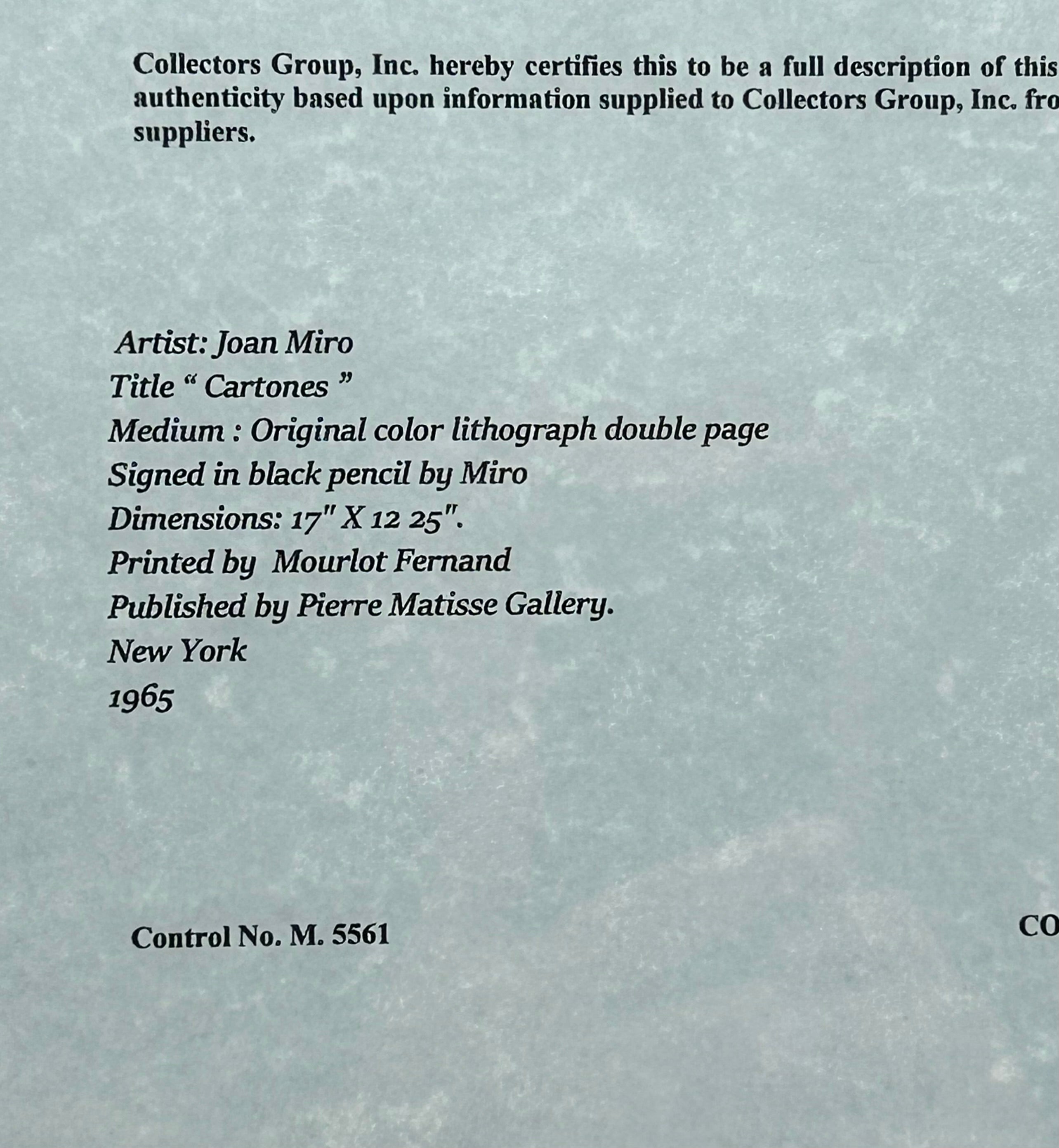 Joan Miro, " Cartones ", 1965, Lithographie. Control No. M. 5561