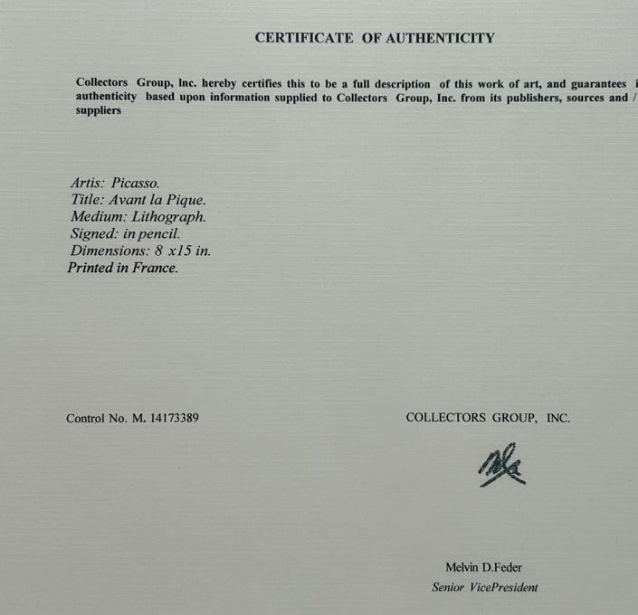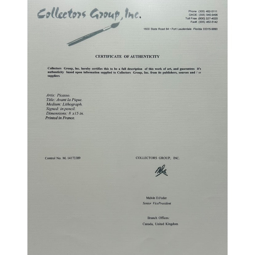 Pablo Picasso lithography “ Avant la Pique“