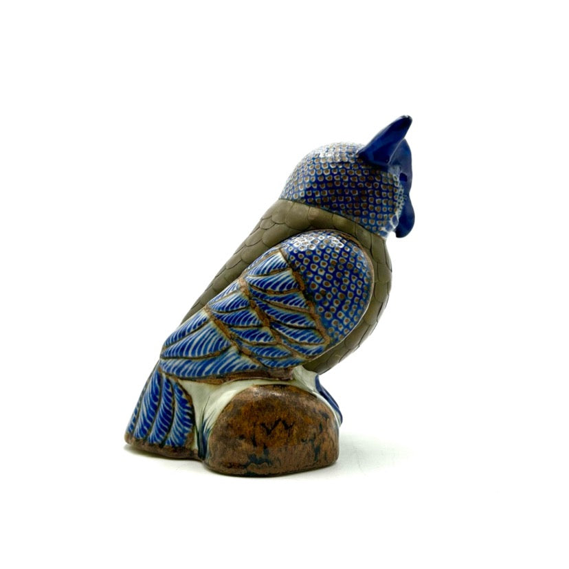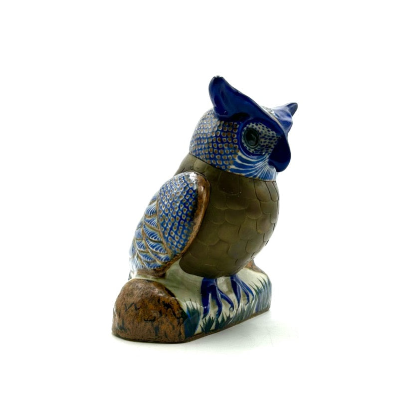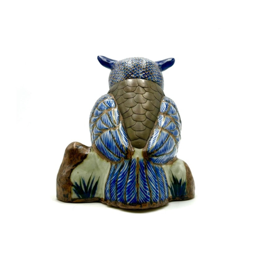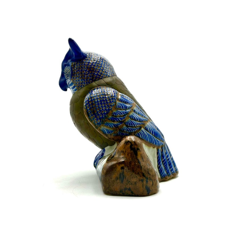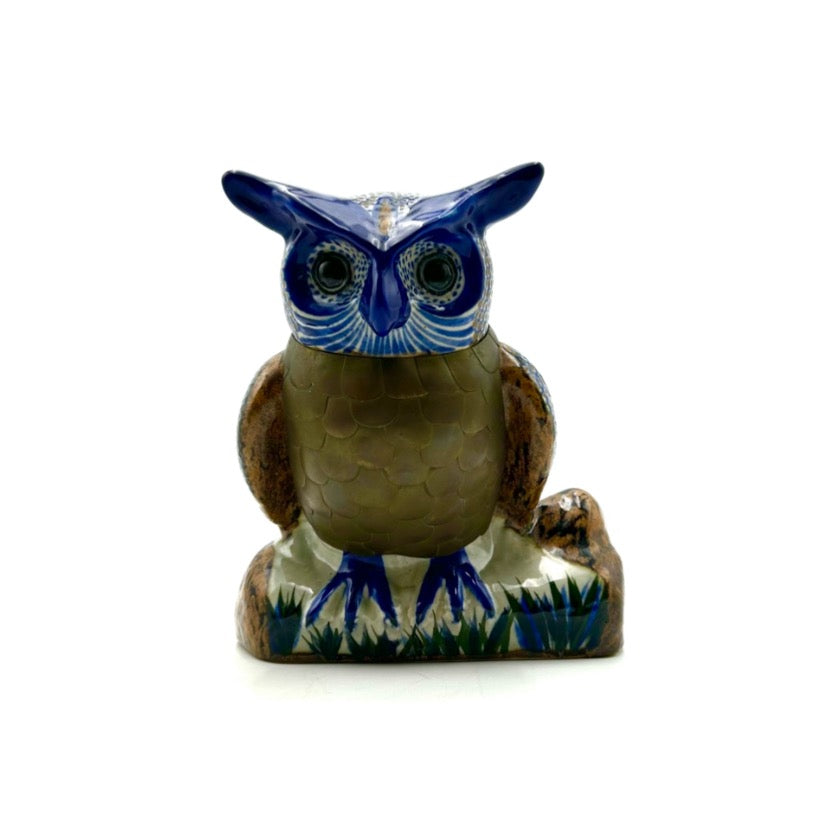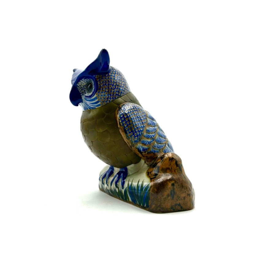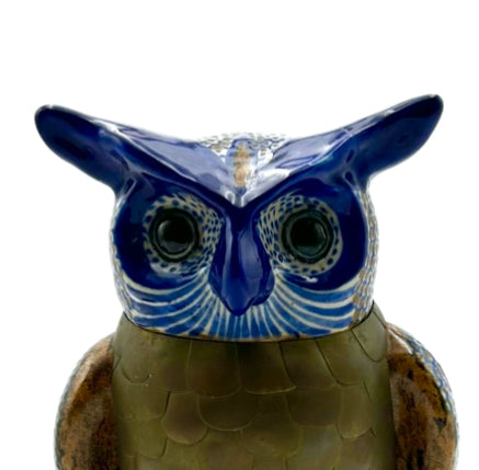 Vintage Mexican Ceramic Pottery & Brass Scaled big Owl.