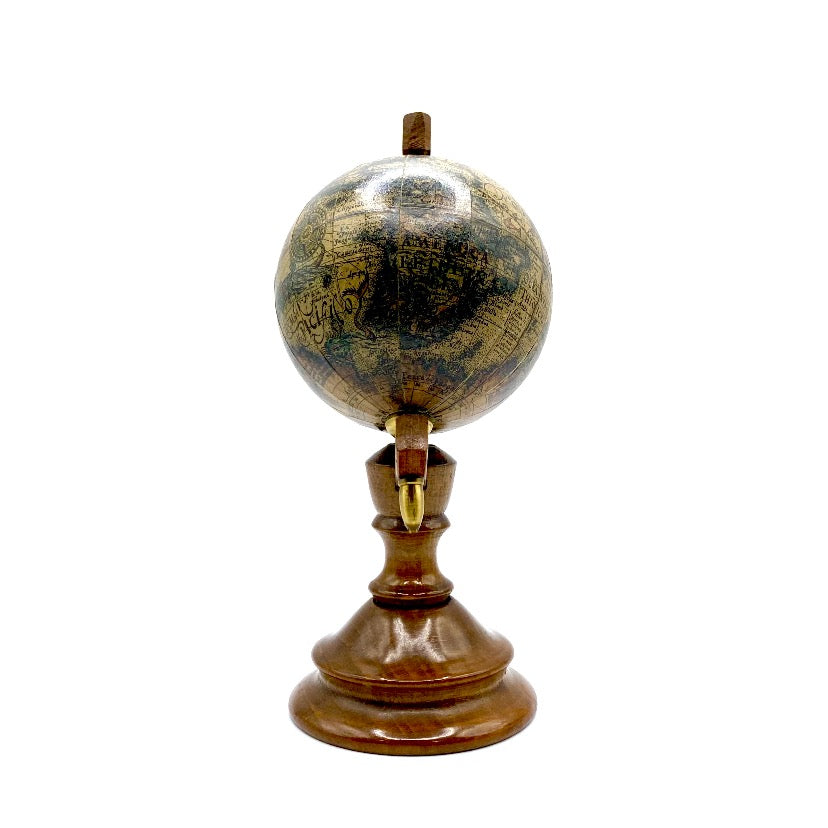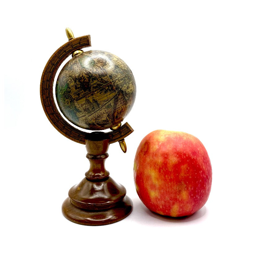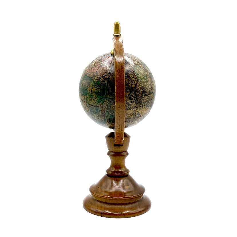Vintage miniature terrestrial globe on wood stand , Italy 1960s.