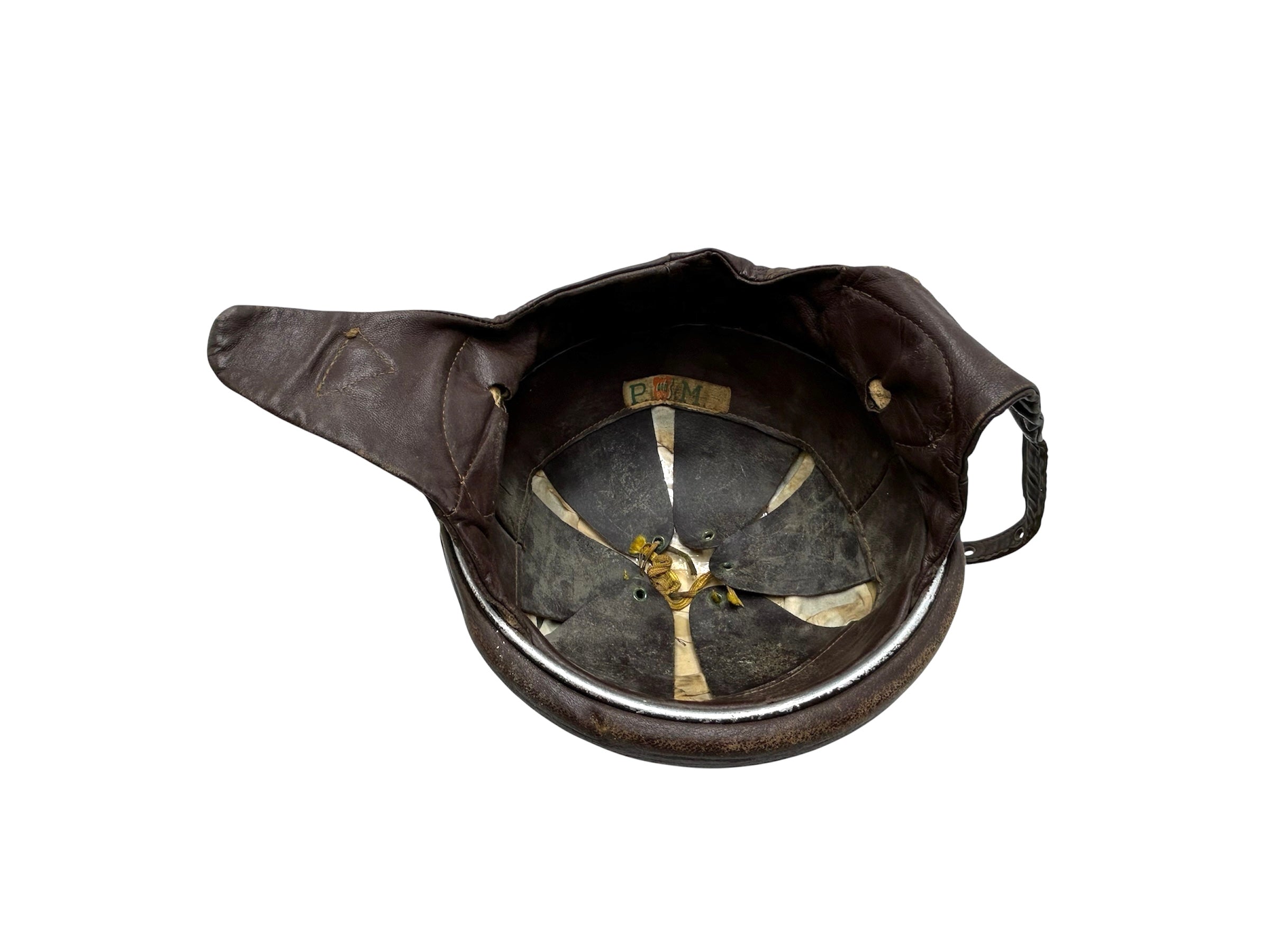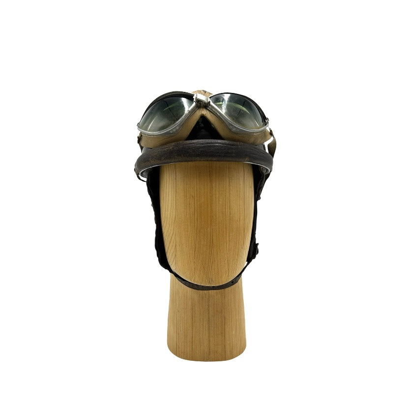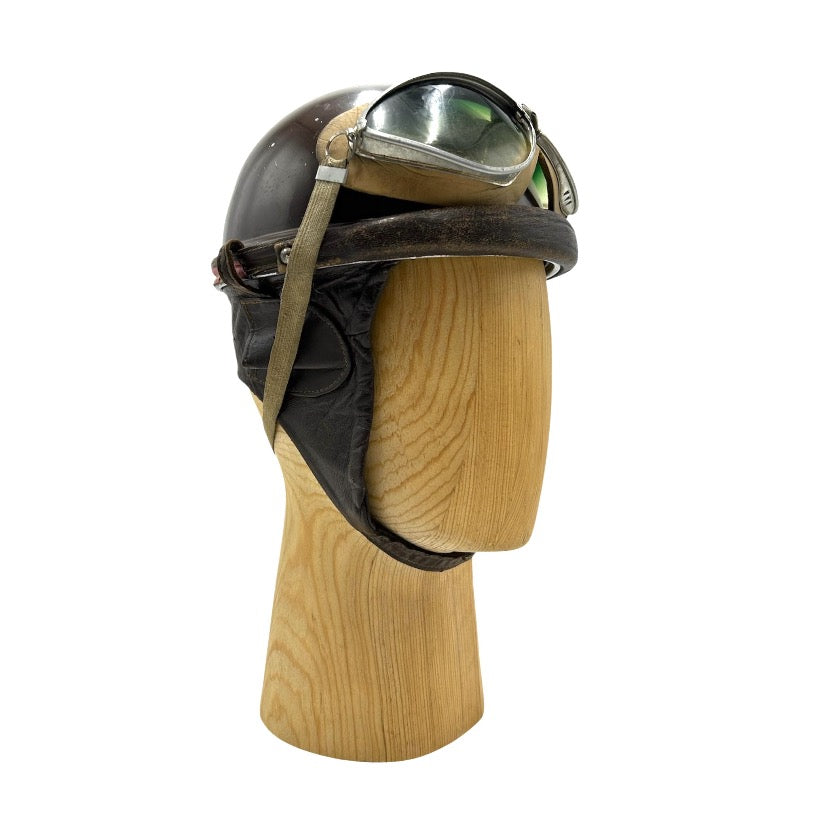 Vintage Motorcycle Crash Helmet with goggles. Helmet made by P.M.